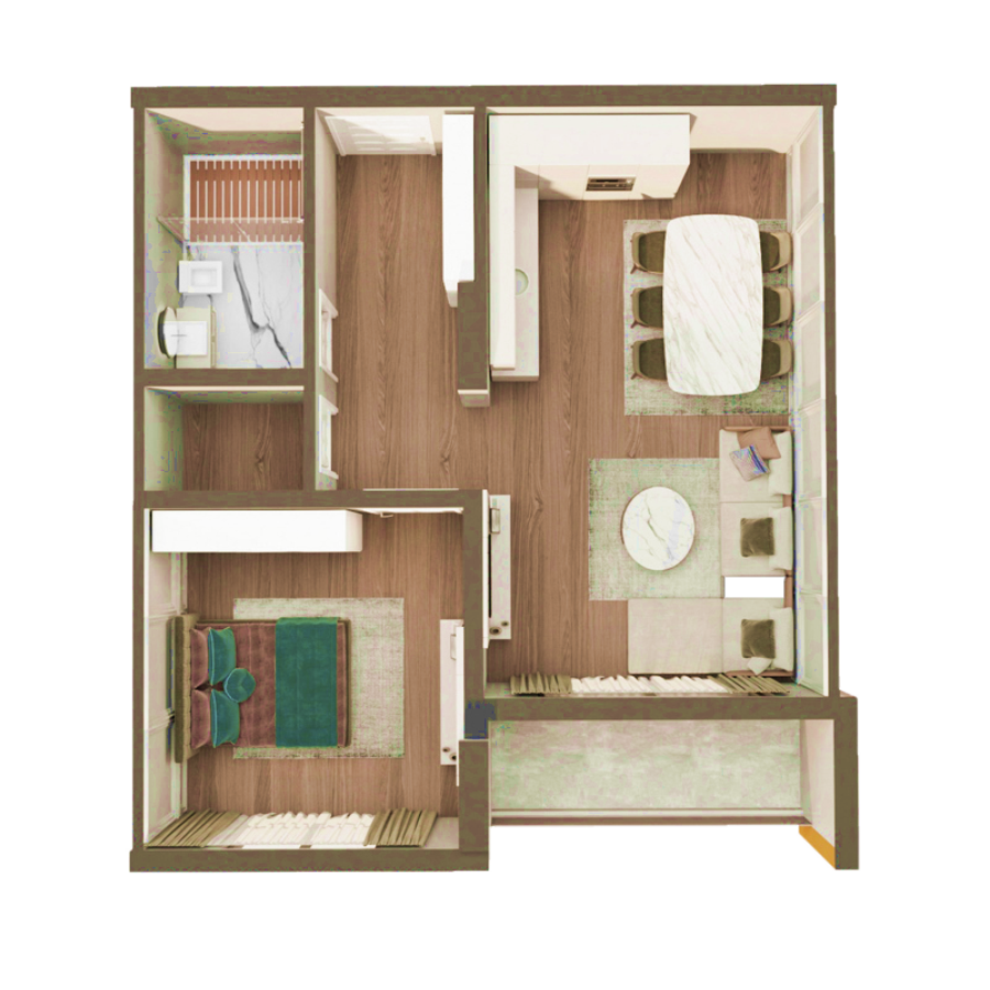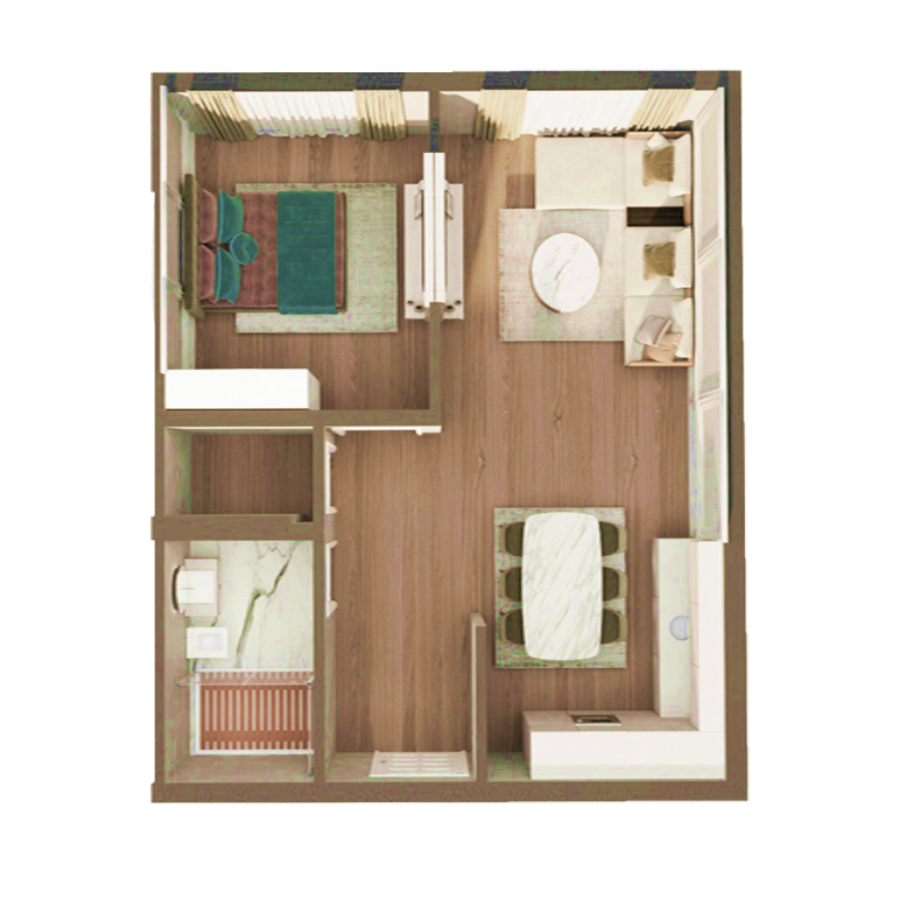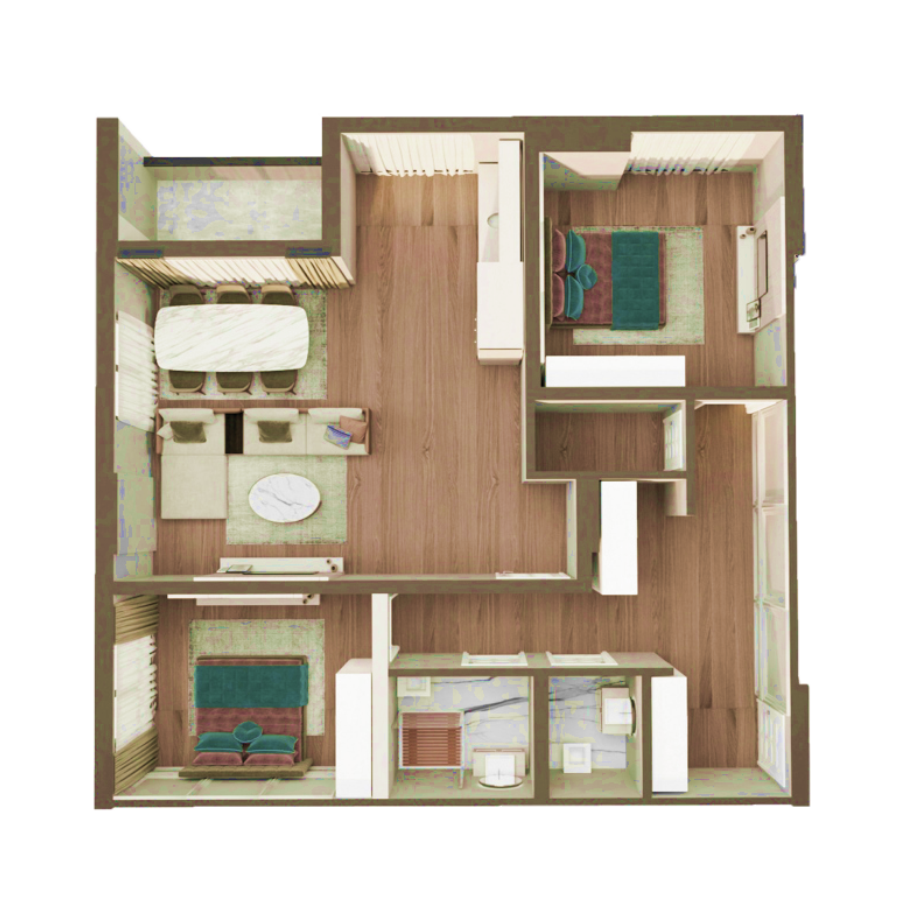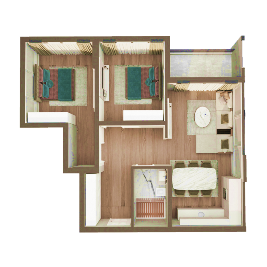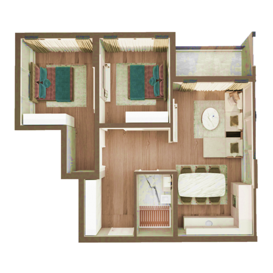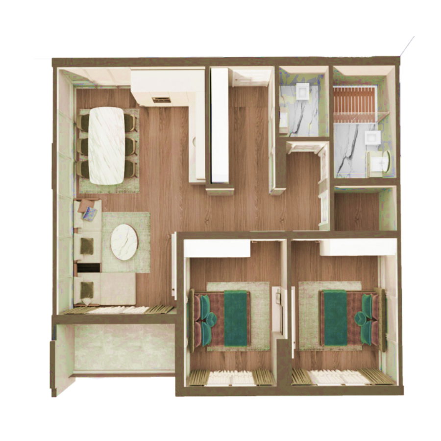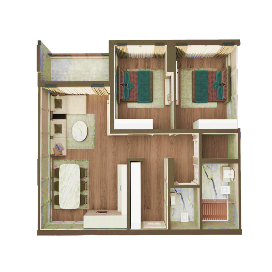 2 Dhoma Gjumi • 1 Dhomë e ndejës • 2 Tualet (WC) • 1 Kuzhinë • 1 Depo • 1 Terasë • 1 Penthouse