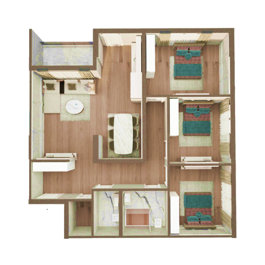 3 Dhoma Gjumi • 1 Dhomë e ndejës • 2 Tualet (WC) • 1 Kuzhinë • 1 Depo • 1 Terasë • 1 Penthouse